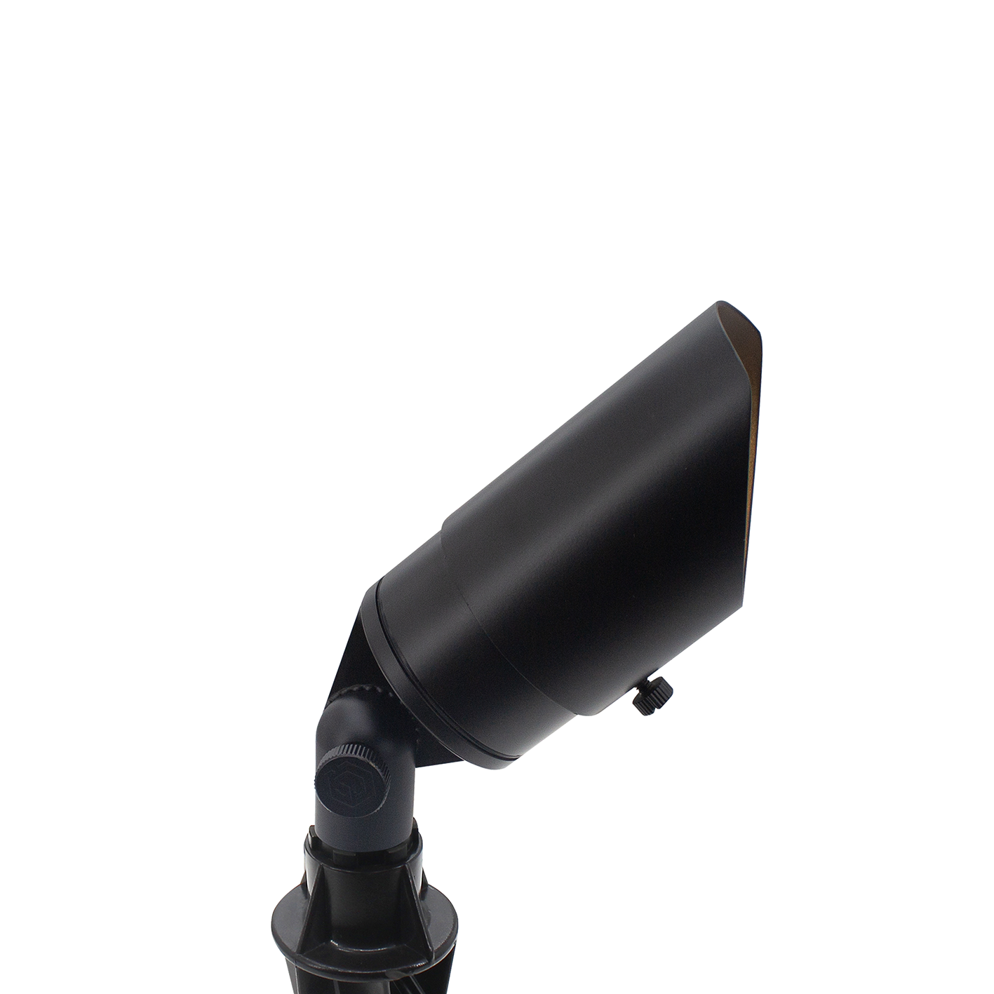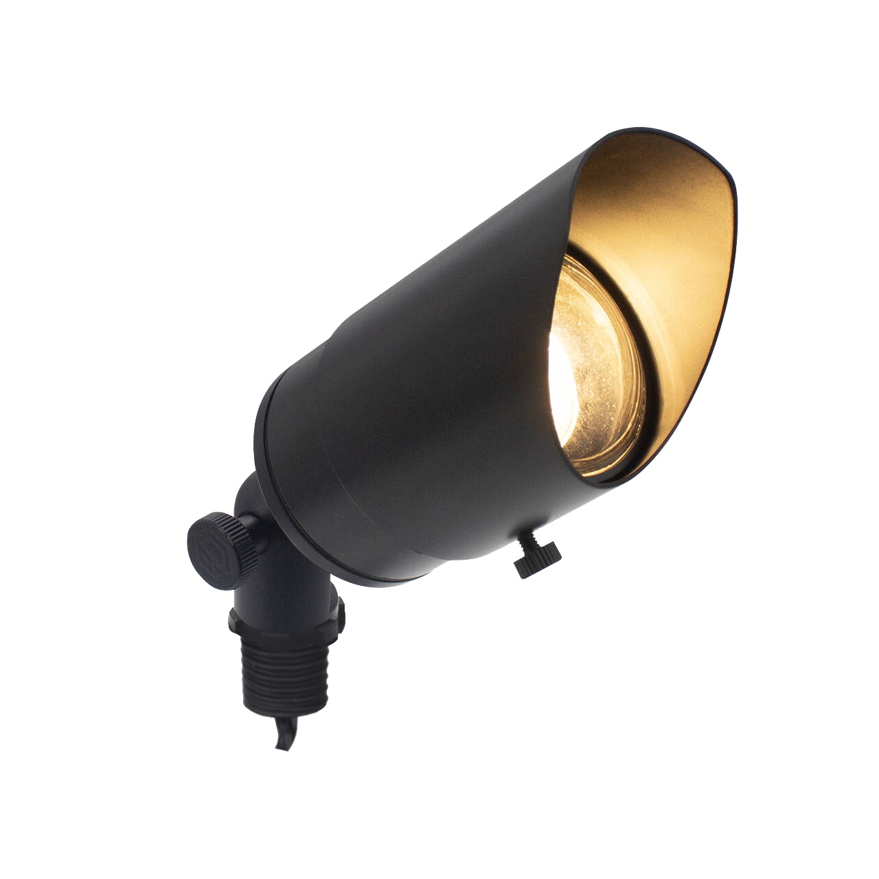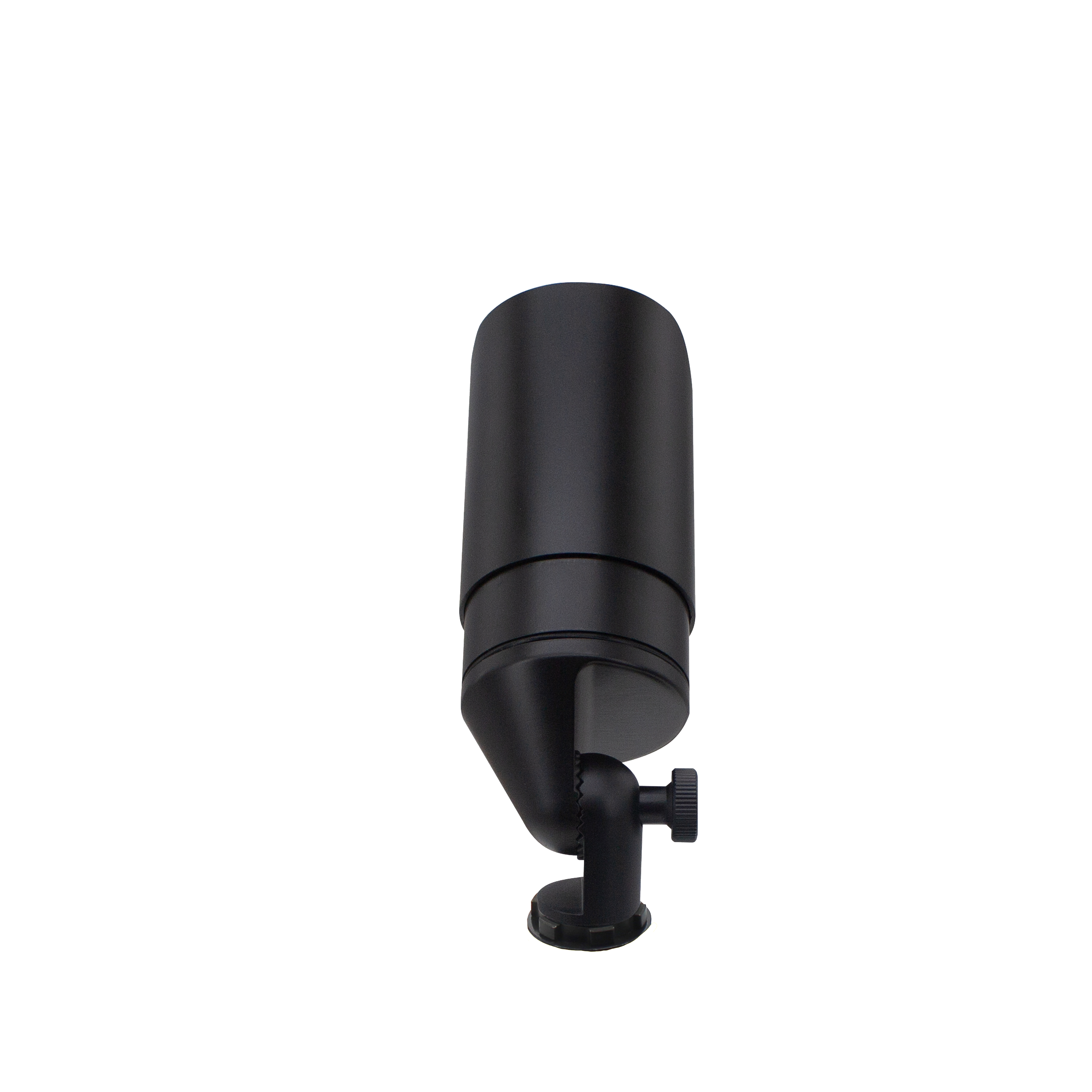 The Striker Torch is a precision-engineered directional accent fixture designed for use with MR16 LED lamps. Constructed from solid brass with a Gun Metal Black finish, it features a convex glass lens to minimize water accumulation and ensure long-term performance. The fixture includes an adjustable glare shield (cowl) for controlled illumination of trees, architectural elements, and other landscape features. Photometric characteristics—such as colour temperature, beam angle, wattage, and lumen output—are determined by the selected MR16 LED lamp. A durable brass adjustment knuckle provides over 120° of vertical aiming capability for optimal light direction.