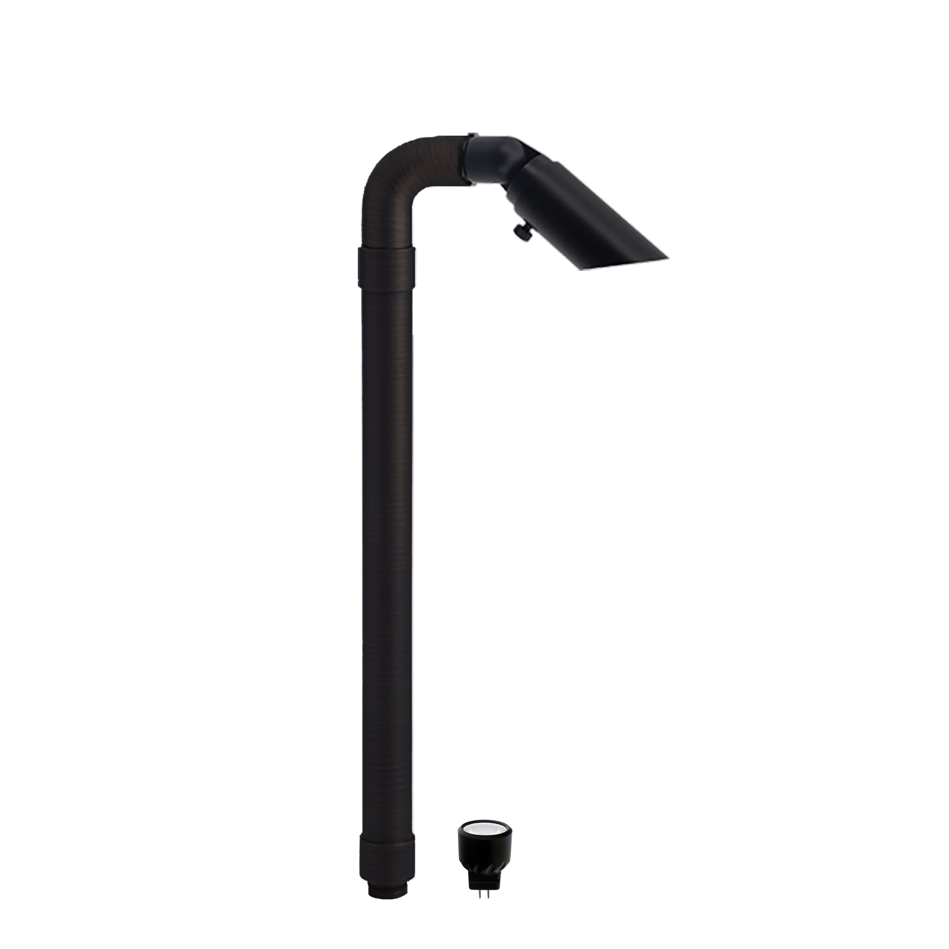 The Striker Torchey Path Light combines the refined design of the original Torchey uplight with an 18-inch black brass riser & black brass elbow, creating a 21-inch-tall fixture that delivers timeless elegance and precise outdoor illumination. Crafted from solid brass with a Gun Metal Black finish, this path light provides warm, focused lighting ideal for walkways, gardens, and architectural accents. Engineered for long-lasting performance, it features a durable weather-sealed body, integrated glare control, and a professional-grade MR8 LED source for consistent, efficient output. Designed to blend seamlessly into any landscape, the Torchey Path Light elevates both safety and ambiance— built to endure and backed by a 5-year warranty.